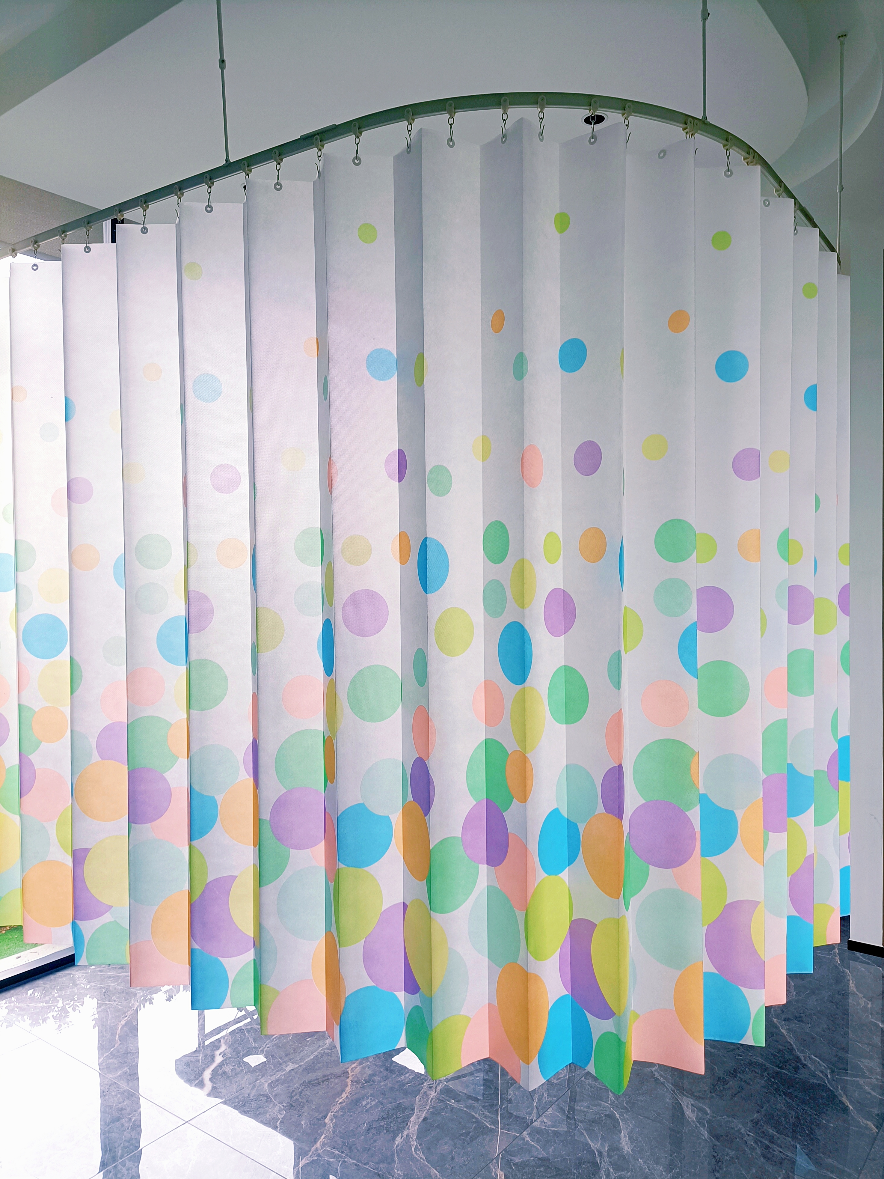 3। রঙিন এবং প্রফুল্ল ডিজাইন: রঙিন বিন্দুগুলির সাথে অনন্য নকশা যে কোনও হাসপাতালের ঘরে একটি প্রাণবন্ত এবং প্রফুল্ল স্পর্শ যুক্ত করে, রোগীদের জন্য আরও স্বাগত এবং সান্ত্বনা পরিবেশ সরবরাহ করে।